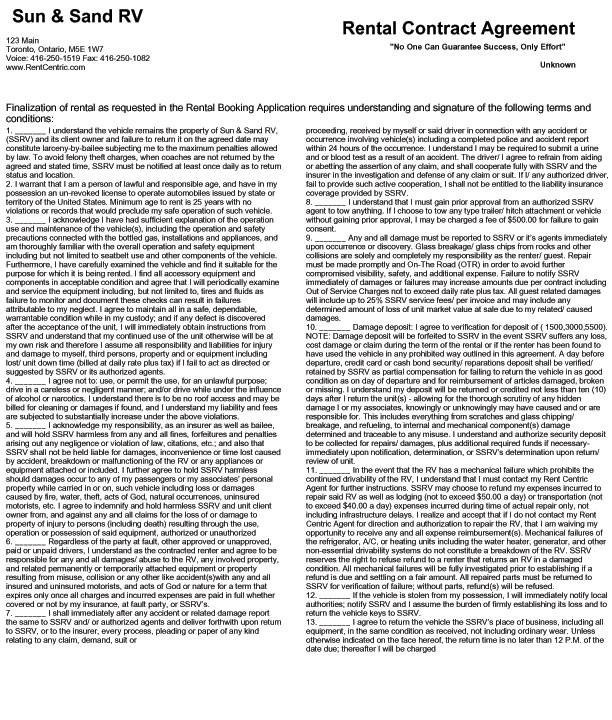 If you have a specific contract requirement that is outside of what has already been created, we are able to deliver customized rental agreements and invoices to meet your need. In fact we can provide you the exact same rental agreement you have been using prior to using Rent Centric RV Rental Software automation, generated directly from the system.